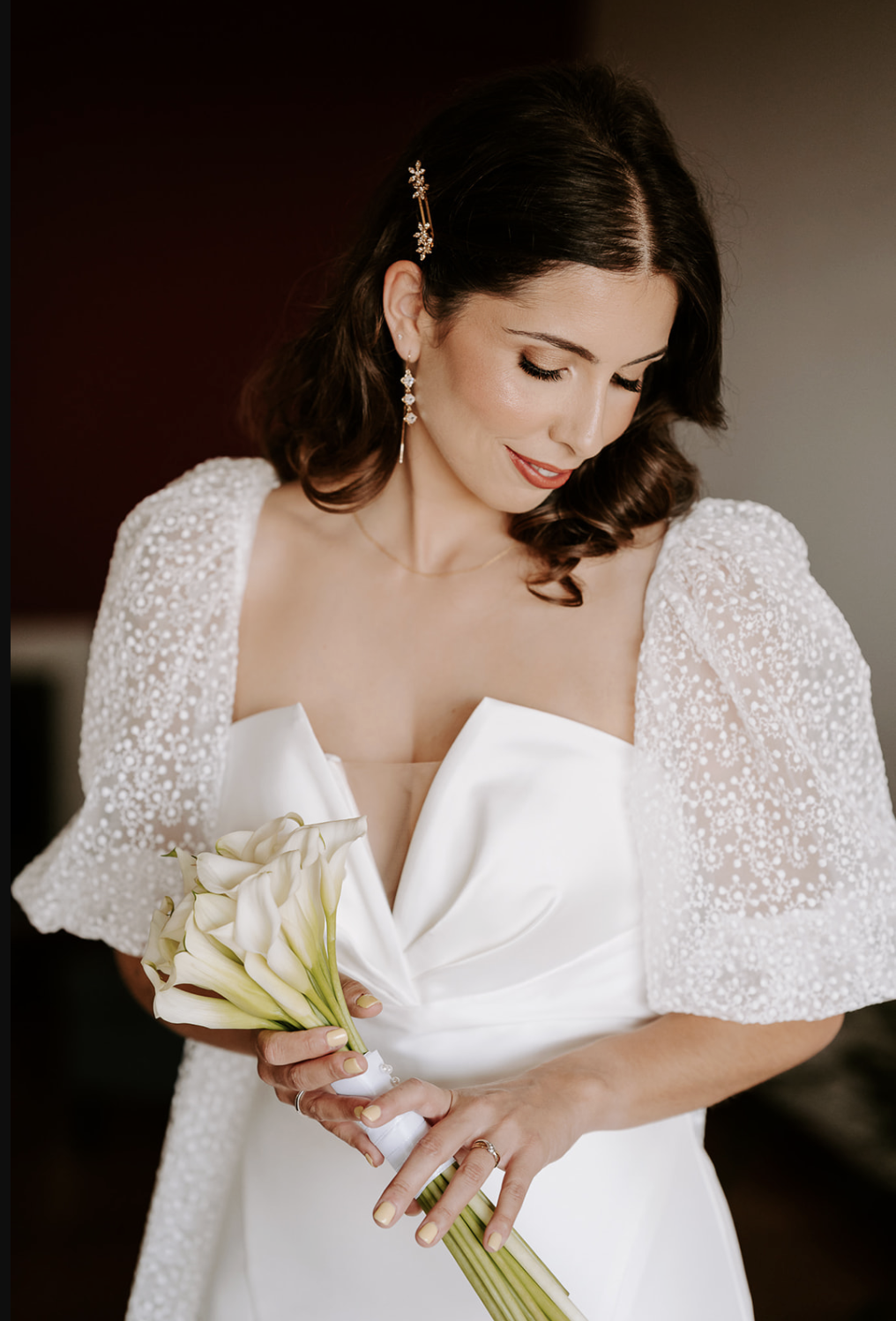 No dia do casamento, chego ao local combinado com tudo o que é necessário para criar o look deslumbrante que planeámos juntas. Permaneço contigo até aos momentos finais, para garantir que tudo decorre na perfeição e com tranquilidade.